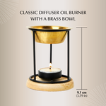 What's inside?: Wrought Iron Burner, Brass Bowl, Wooden Coaster, Tea Light Candle, and a free 10 ml Oud Diffuser Oil worth £4