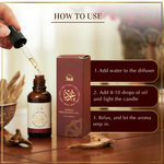 HOW TO USE: Add 7-8 drops of the oud oil to water and burn it using a candle based or electronic diffuser. You can add more oil to your diffuser for a stronger scent or if burning in a large area
