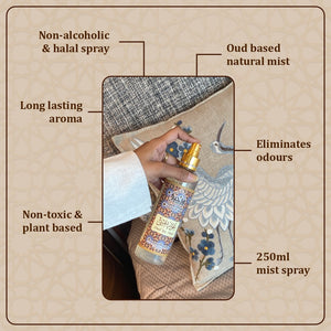 Why choose Dukhni Mists? With their enduring fragrance, ethical ingredients (non-alcoholic, cruelty-free, vegan), and connection to the timeless Arabic tradition of home scenting, they stir nostalgia and bring forth serenity. Dukhni is committed to delivering an authentic and opulent aromatic journey.