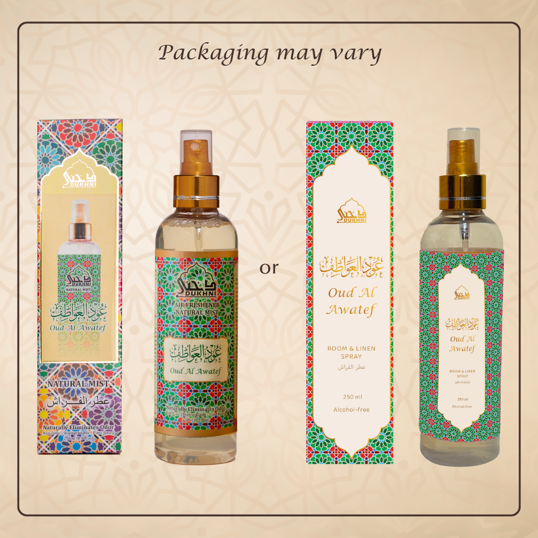 Scent profile: Grassy hints of citron and lemongrass open up to a spicy middle of star anise, clove, and stone flower with the Oud Al Awatef natural mist. Warm and elegant base notes of musk, amber, and agarwood give this non-alcoholic fabric and room spray a fresh and intoxicating feel.