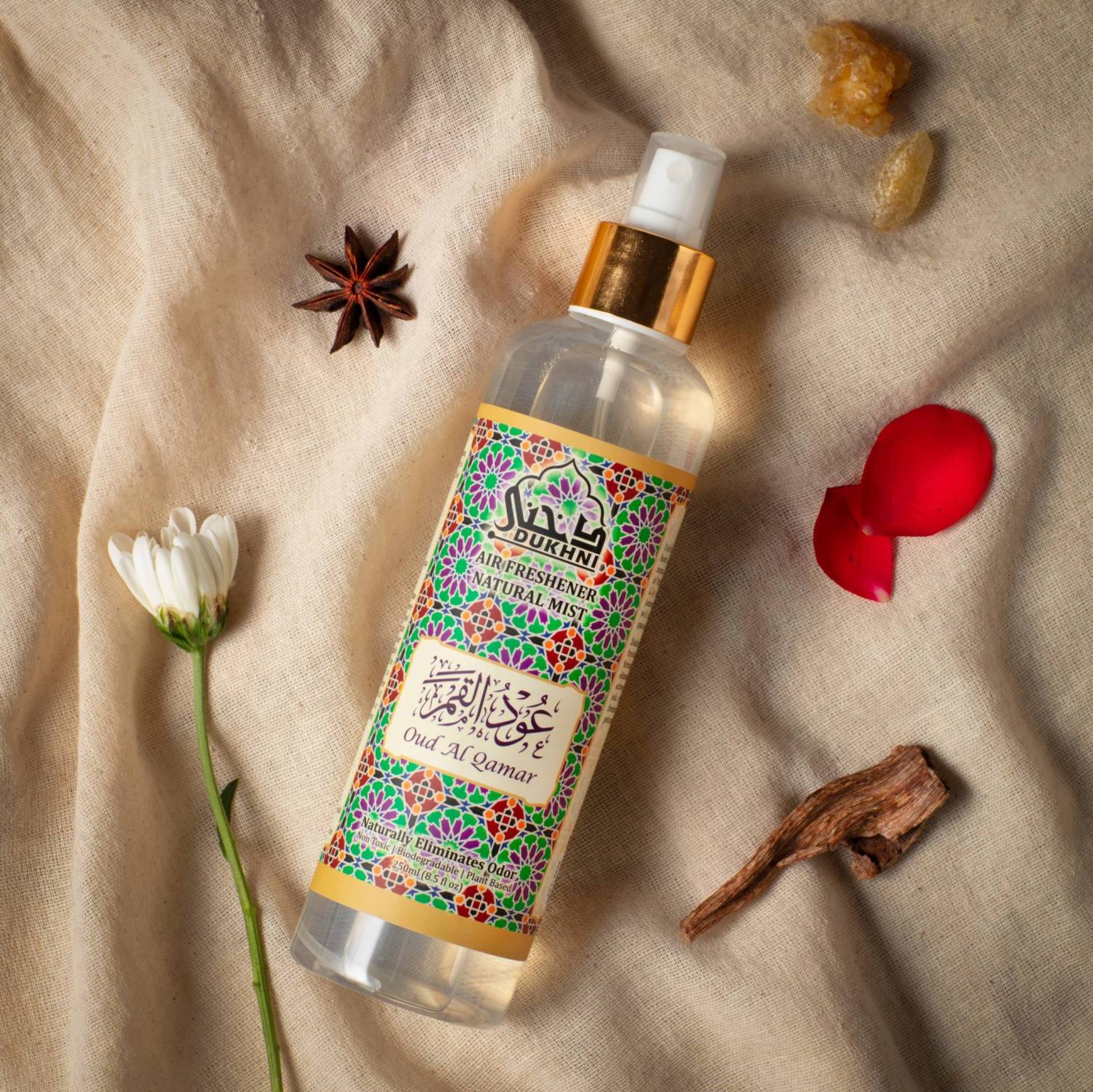 Transform your space Dukhni mists are ideal for refreshing fabrics, prayer mats, furniture, and more. Versatile as air fresheners, car sprays, or for revitalizing your kitchen and bathroom, they're perfect for any moment, be it pre-prayer, pre-guests, or post-cleaning.