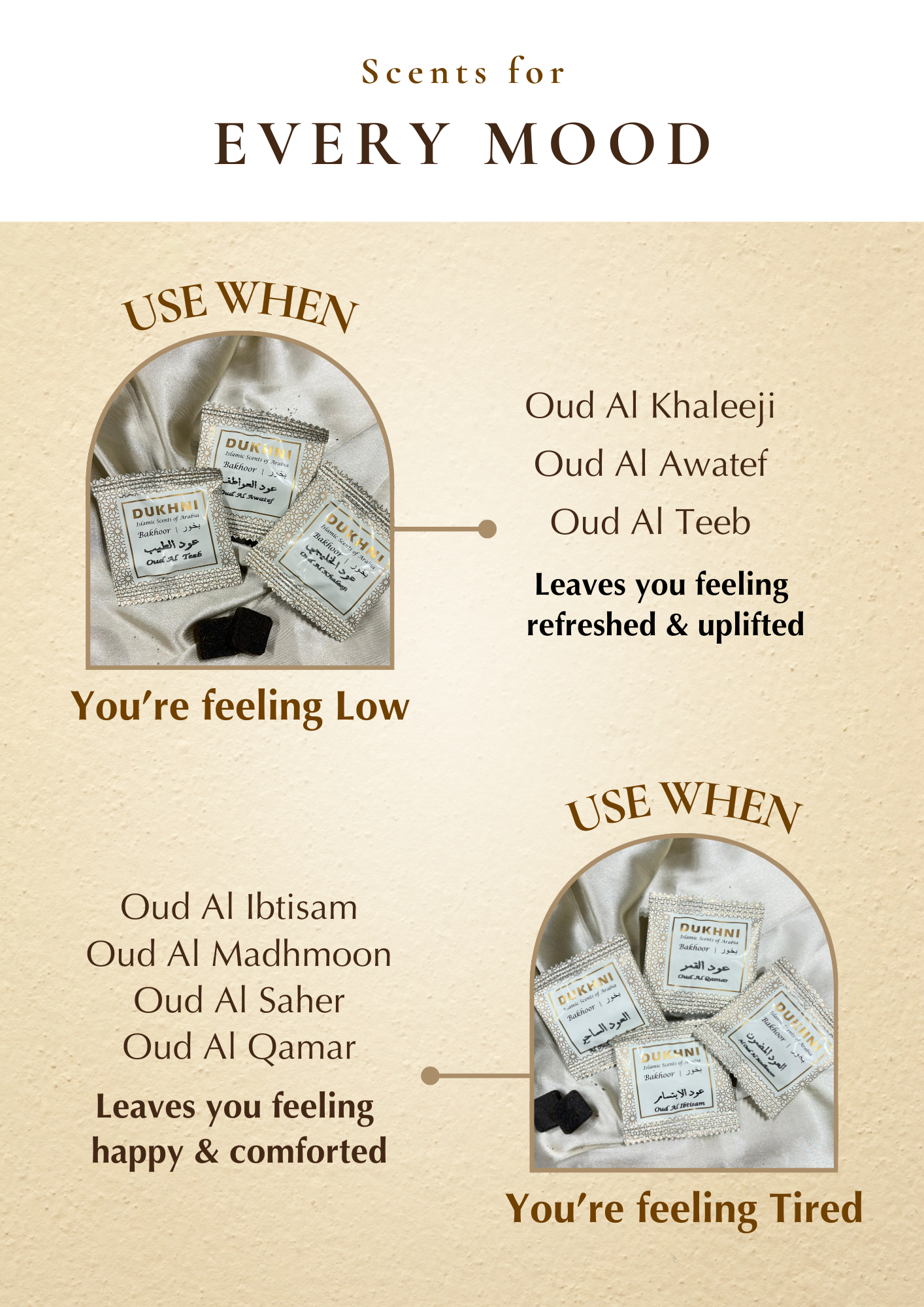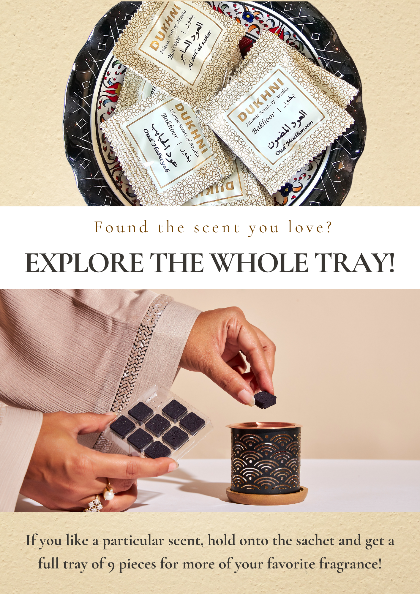 A single Dukhni bakhoor piece can be burner for upto 3.5 hours.