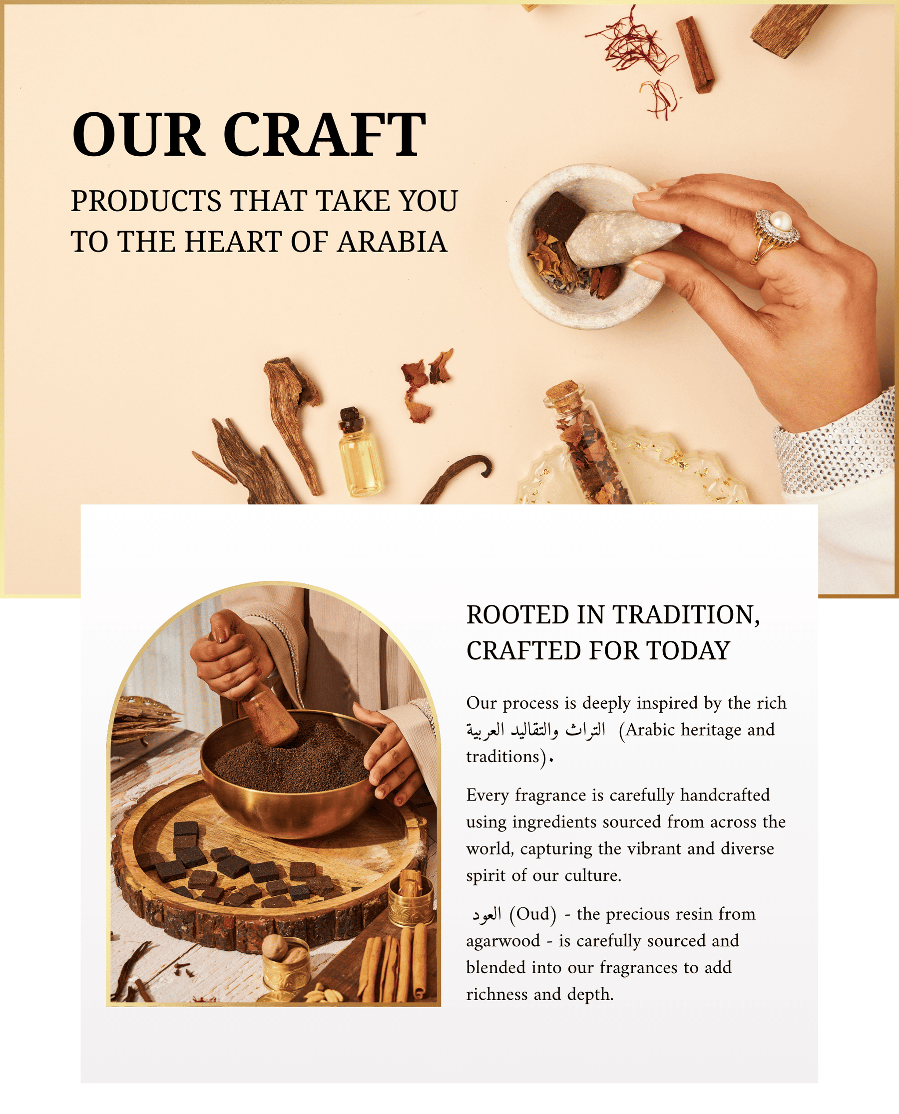To meet the needs of the modern lifestyle while staying true to our rich traditions, we have expanded our collection to include زيت الناشر (diffuser oils), عطر الفراش (oud sprays), and أعواد بخور (incense sticks). These products allow you to experience the timeless essence of Arabic perfumery today without compromising on authenticity or quality.