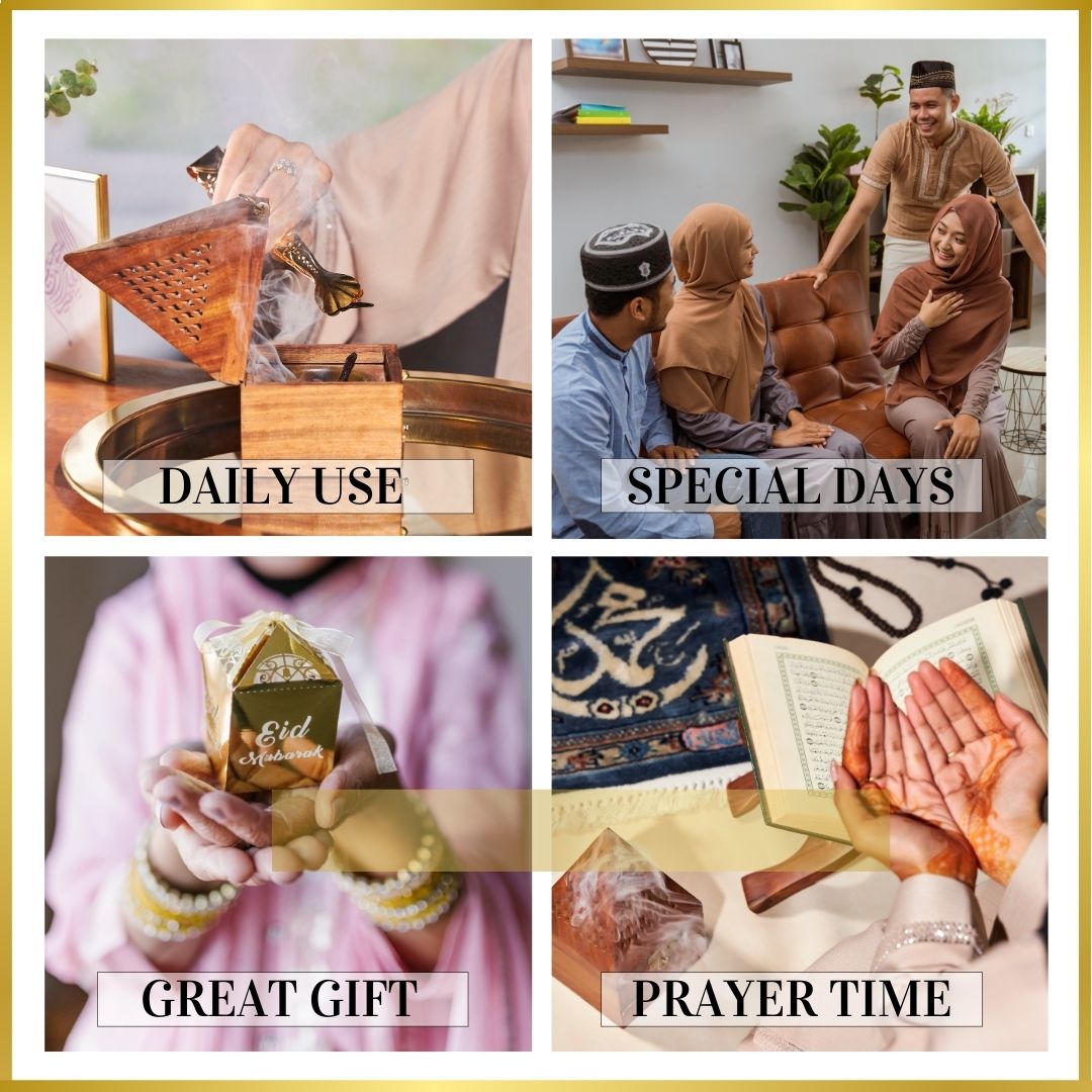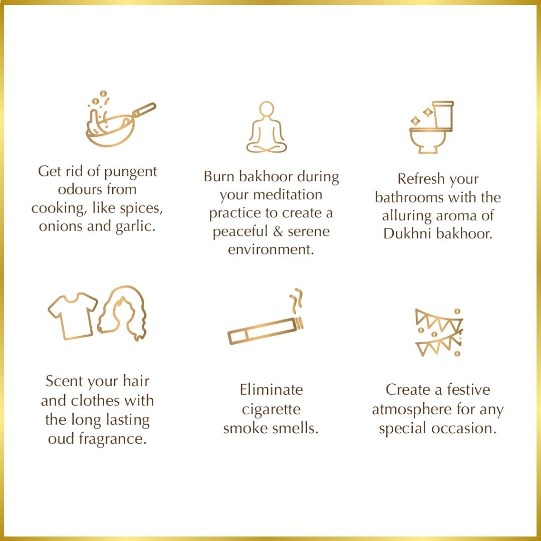 A single Dukhni bakhoor piece burns for upto 3 hours on a dukhni burner, around 15 minutes on a charcoal burner & 10 minutes on an electric burner.
