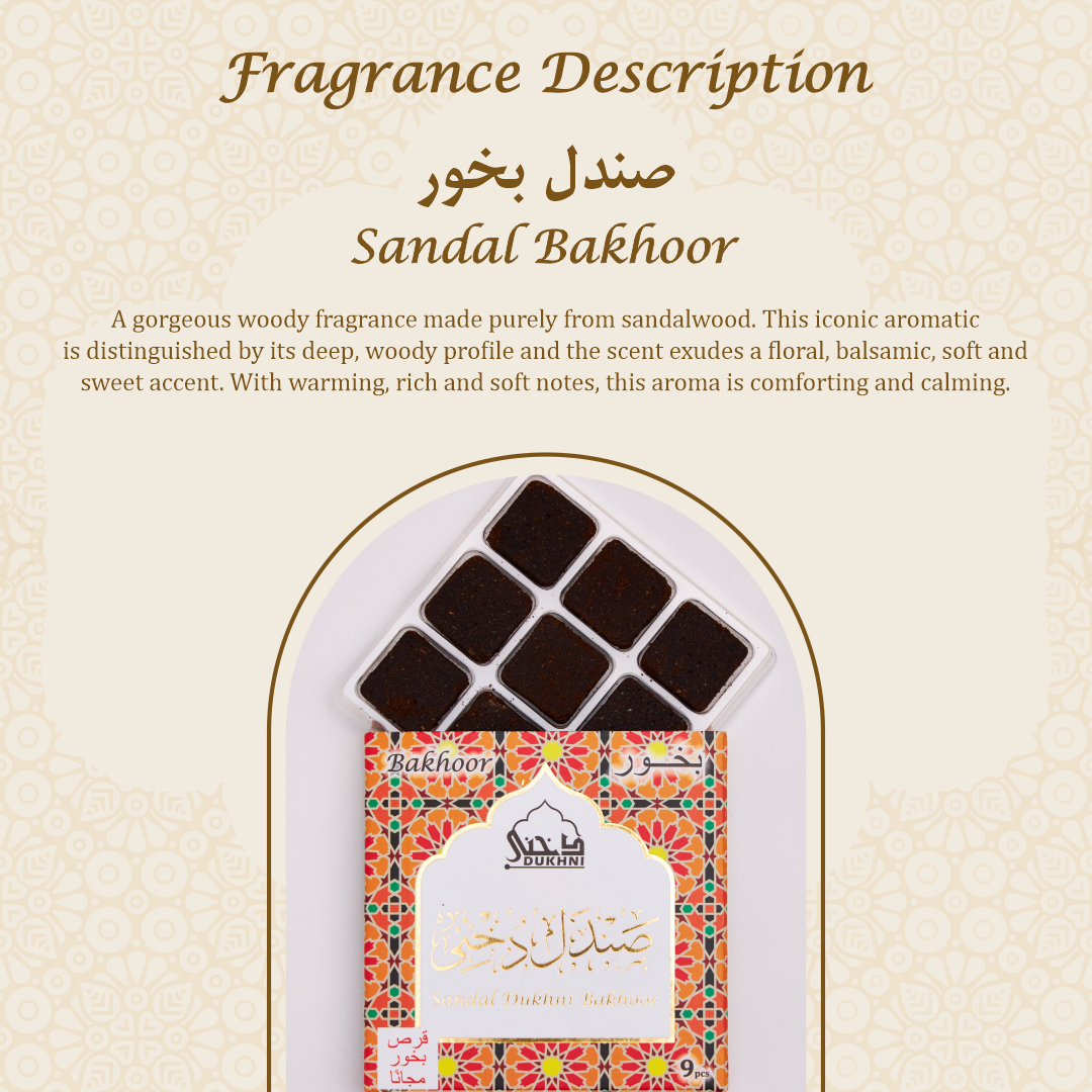 What's included? 3 boxes of Sandal Dukhni Bakhoor with 9 pieces in each & 3 extra sample pieces.