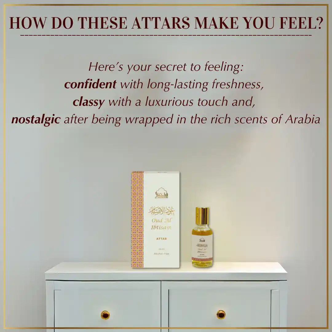 Try Dukhni’s Oud Al Ibtisam Attar—an enchanting floral scent crafted by the finest noses. Long-lasting and irresistible, this arabic perfume is trending now for a reason. Save more with the 30ml pack.